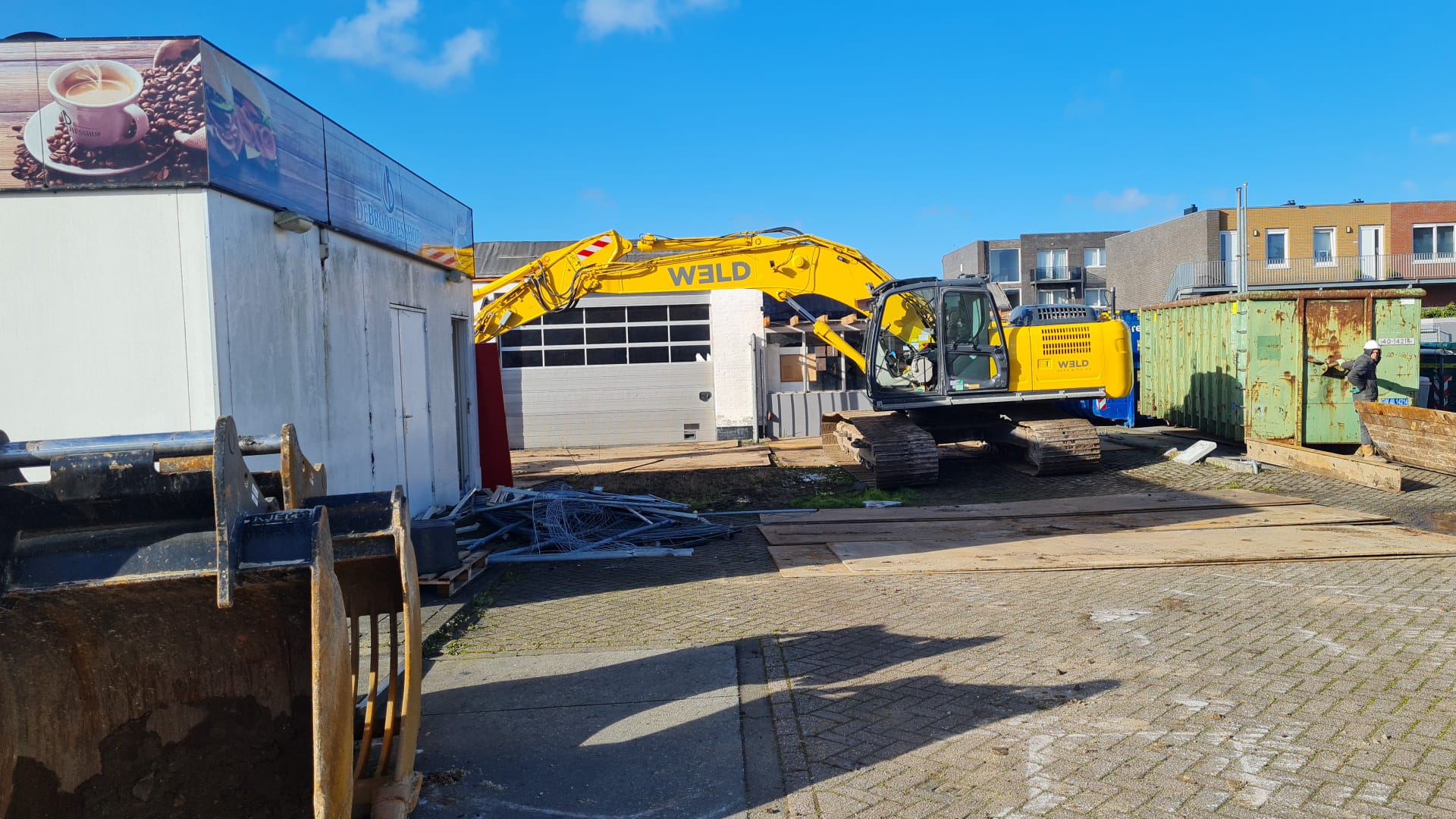 De grote loods wordt spant voor spant verwijderd. Het oude gebouw waar de broodjes verkocht werden is er niet meer. De sloopwerkzaamheden vorderen vlot. Binnenkort is het terrein opgeruimd van al deze oude bouwmaterialen en wordt het begin gemaakt om de grond bouwrijp te maken. Een deel van de oude bouwmaterialen (beton en metselwerk) wordt zo veel mogelijk gerecycled en hergebruikt.