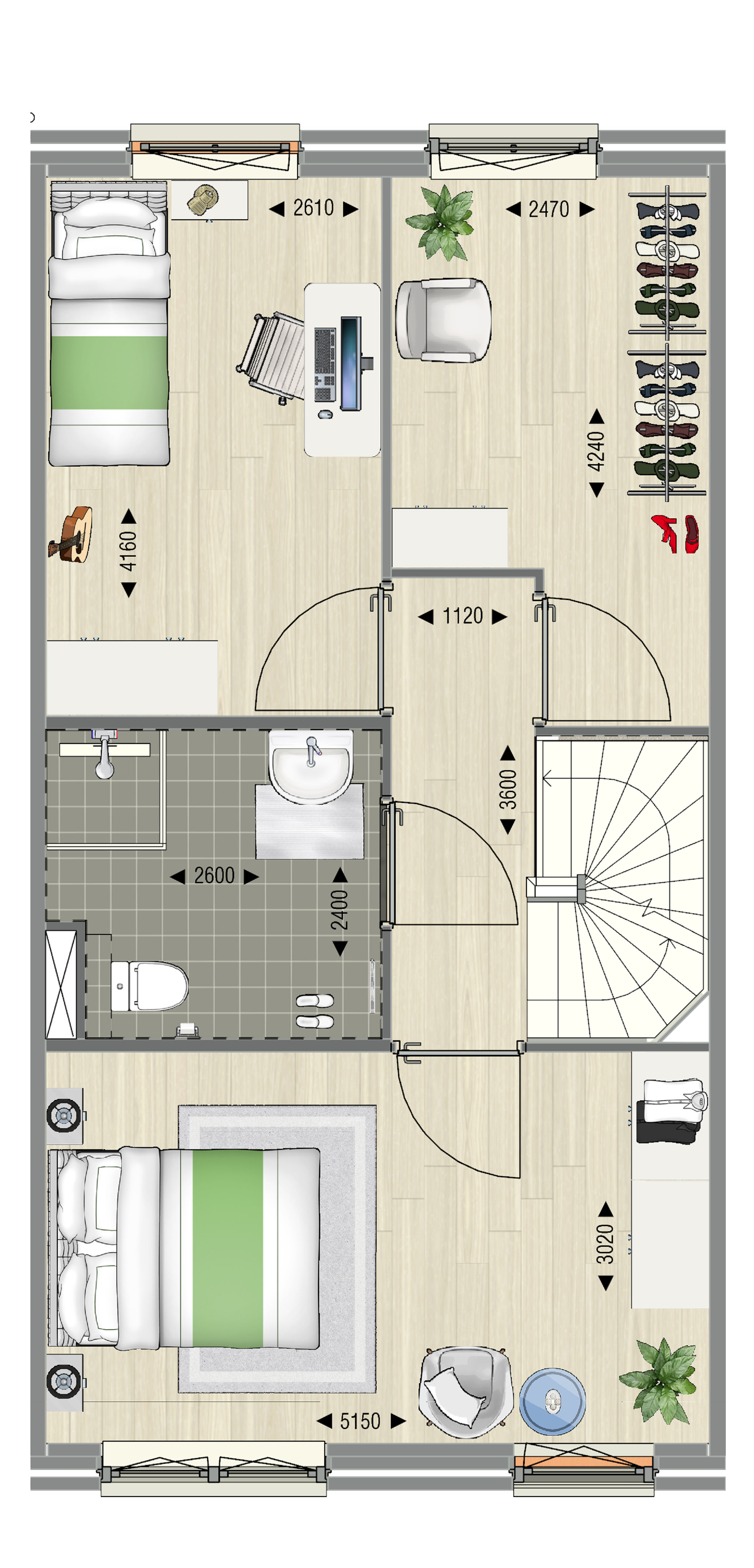 Er komen zes unieke geschakelde hofwoningen. Kiest u liever voor een hoek- of tussenwoning? De woningen zijn met de voorzijde georiënteerd aan het groene hof.